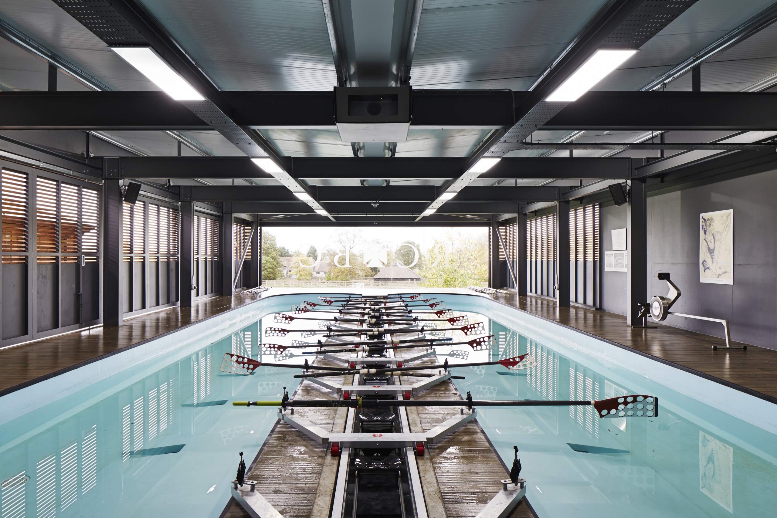 The Radley College Rowing Centre is a new rowing training facility, providing the high-quality year-round training facilities needed for the school’s rowing teams. The Rowing Centre building contains a state-of-the-art rowing tank that closely mimics actual river conditions, permitting on-site training throughout the year regardless of the weather. The building is naturally ventilated to prevent overheating and avoid chemical build up, while extensive glazing reduces energy demands and makes for a more pleasant training environment.